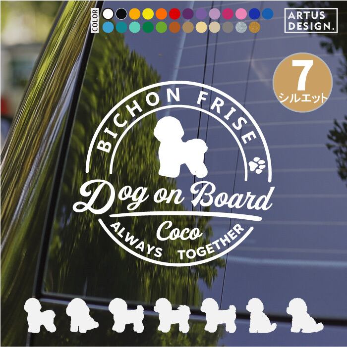 ビションフリーゼ ステッカー 車 犬 シール 名前 おしゃれ かわいい 愛犬グッズ オーダーメイド 筆記体 カッティング