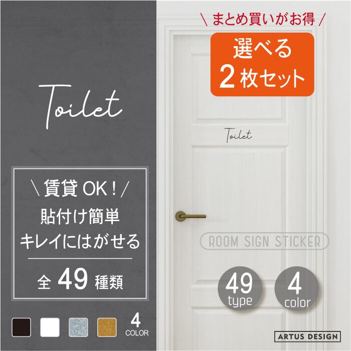 2枚セット ルームステッカー ドア ステッカー 筆記体Aタイプ 文字 ウォールステッカー 筆記体 ルームサイン トイレ バスルーム リビング キッチン ベッドルーム 寝室 インテリア おしゃれ 賃貸 はがせる シンプル シール 部屋名 転写 カッティング