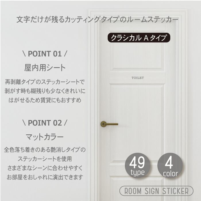 ルームステッカー ドア ルーム ステッカー クラシカルAタイプ 文字 ウォールステッカー 筆記体 ルームサイン トイレ バスルーム リビング キッチン 寝室 ベッドルーム インテリア おしゃれ 賃貸 はがせる シンプル シール 部屋名 転写 カッティング