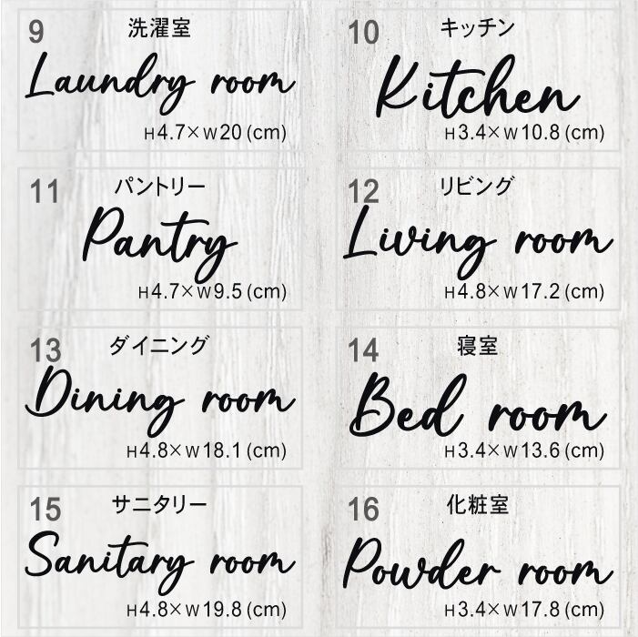 8枚セット ルームステッカー ドア ステッカー 筆記体Bタイプ 文字 ウォールステッカー 筆記体 ルームサイン トイレ バスルーム リビング キッチン 寝室 ベッドルーム インテリア おしゃれ 賃貸 はがせる シンプル シール 部屋名 転写 カッティング